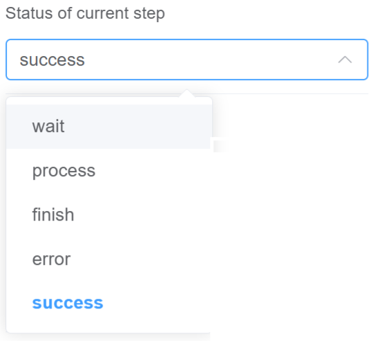 | Status of current step | Choose the status of the current step from wait, process, finish, error or success | ![]() |
