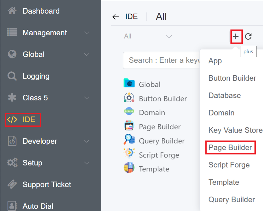 4.The created Page will be visible on the IDE panel under Page Builder. Click on the created blank page to create your customize form/page.