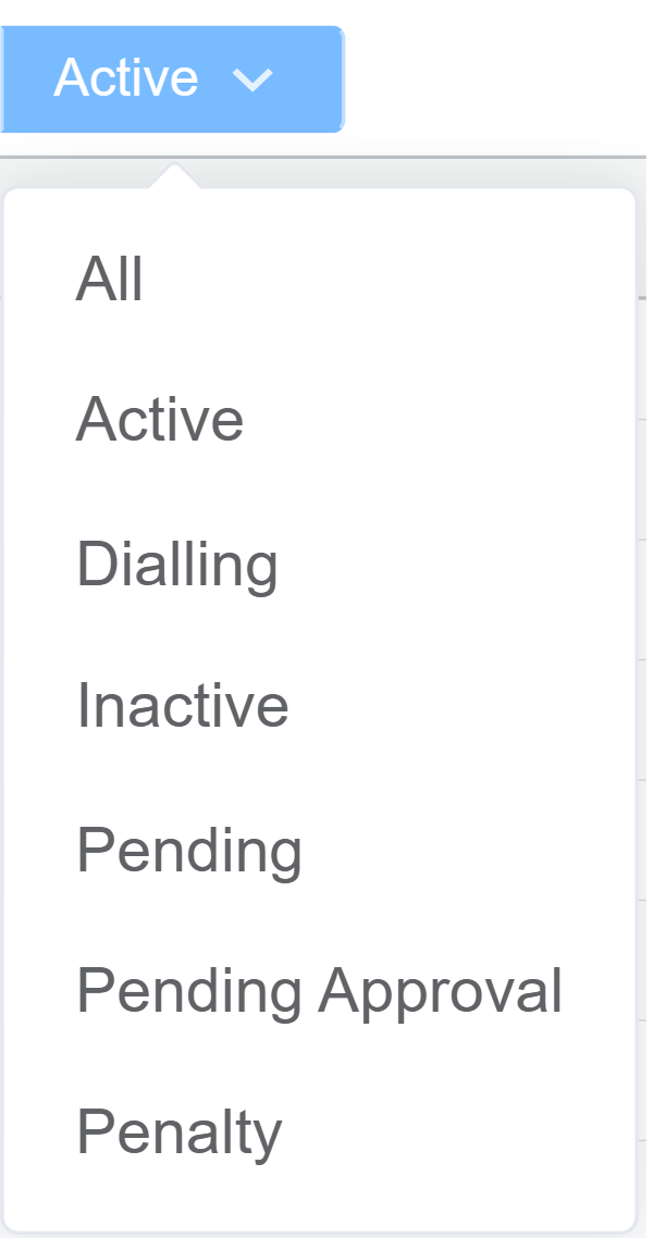Active: Filter customer(s) based on account status. Results on the page will automatically arrange themselves according to the filter.