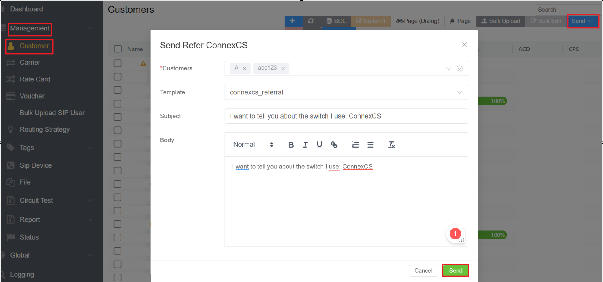 Send: ConnexCS includes email and SMS support for your customers. Also send ConnexCS Referrals.