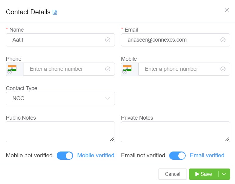 Mobile Verified and Email Verified: Manually set the status for each. Check in the Customer Details to confirm if the Mobile and Email are verified. Alternatively, the customer can do this in the Customer Portal.