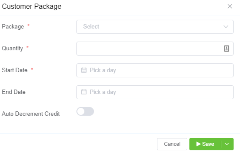 Selecting Auto Decrement Credit will debit the package amount from the customer's account. It's based on the Frequency and Frequency Match under Package details.