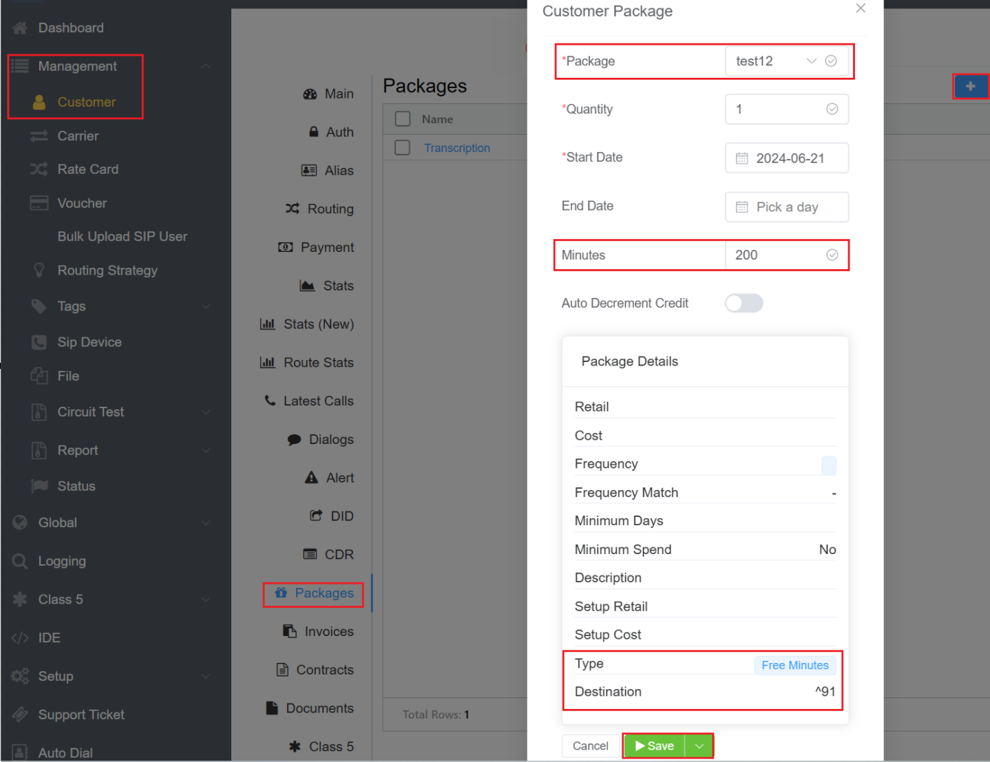 Select the Package you want to assign to the customer. Package Details will appear below.
