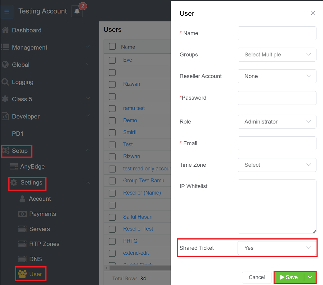 If an Admin has raised a ticket and wants their customer(s) to view the tickets then the Admin can grant access to the customers by going to Setup Settings Users Customer [Name] Shared Ticket Yes. Click on Save