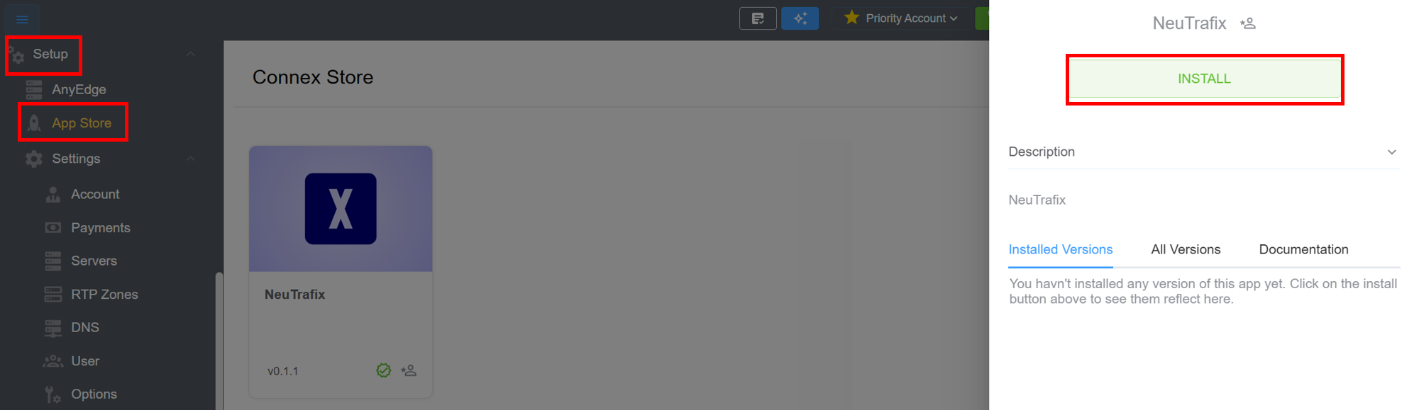 - Navigate to Setup App Store NeuTrafix and click