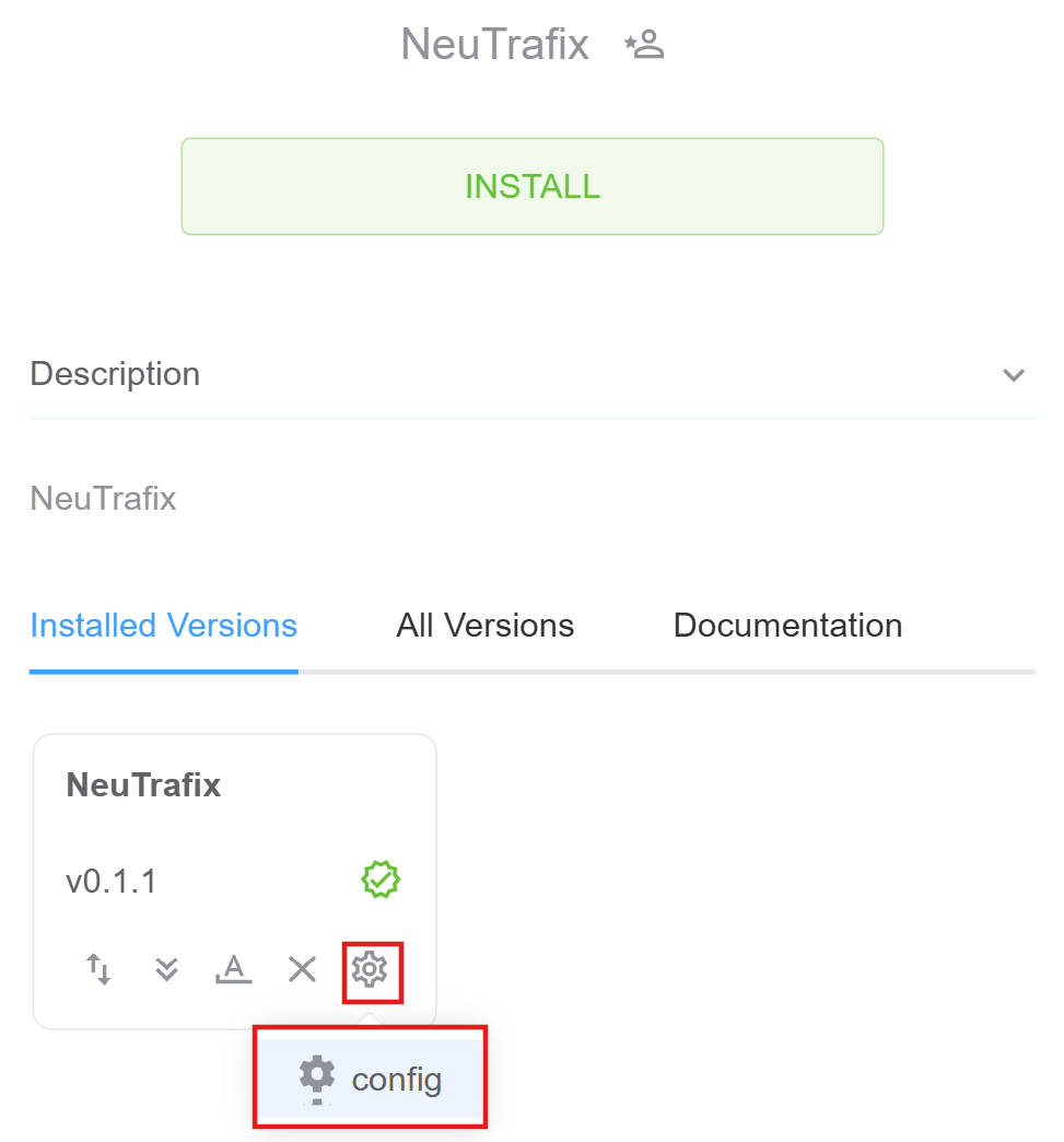 Installed Versionstab, then hover onsettingsicon and click onConfig.