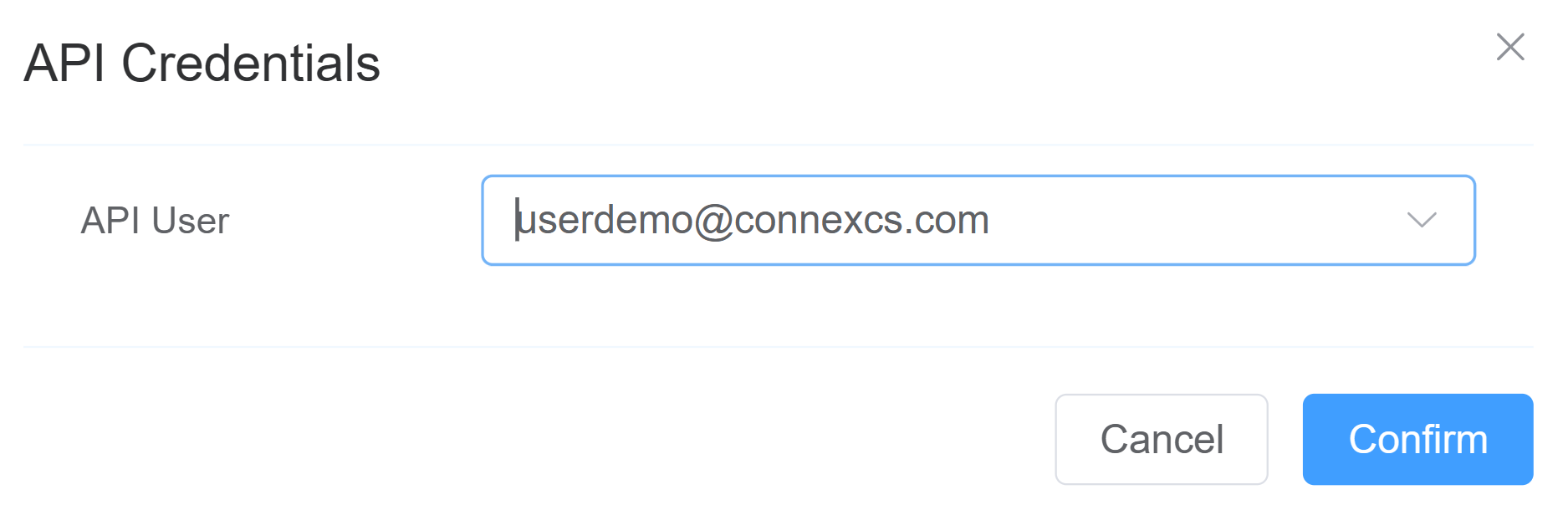 API User: The selected API user represents the authenticated entity making API requests.- Enter the