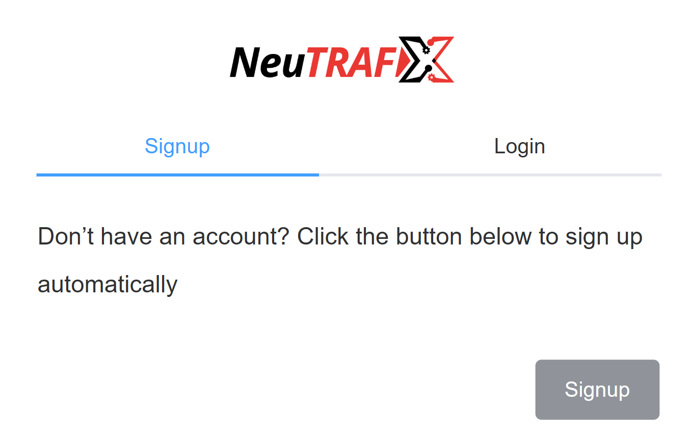 NeuTrafixapp on the sidebar. Complete theSignupprocess if you are a new customer.