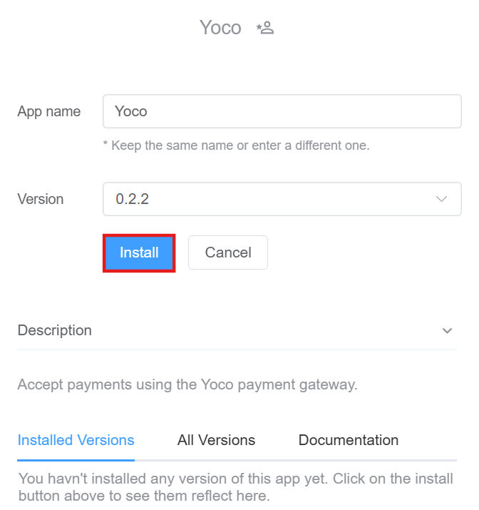 5.You can view the Description, Installed Versions, All Versions and any Documentation related to the Application.