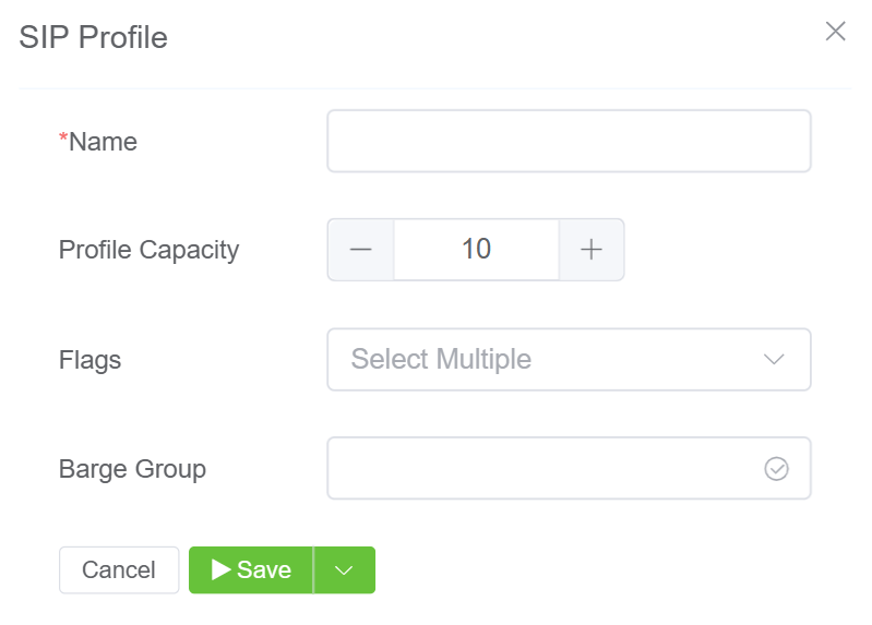+button. It will let you create a new SIP Profile. Fill in the following details.- Name: This is a required field that will display your SIP Profile's name.