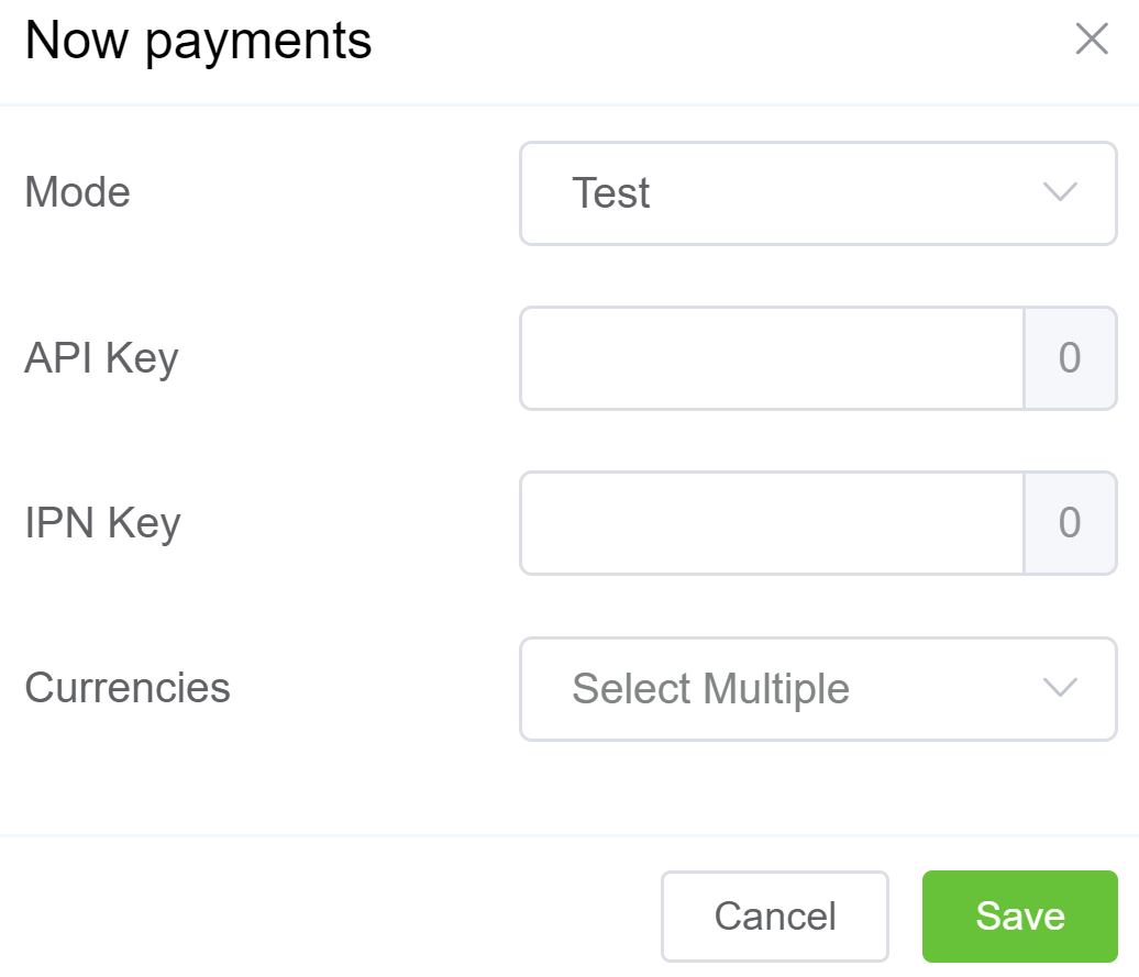 - API Key: Access the NOWPAyments API Reference Guide to retrieve the Secret keys.