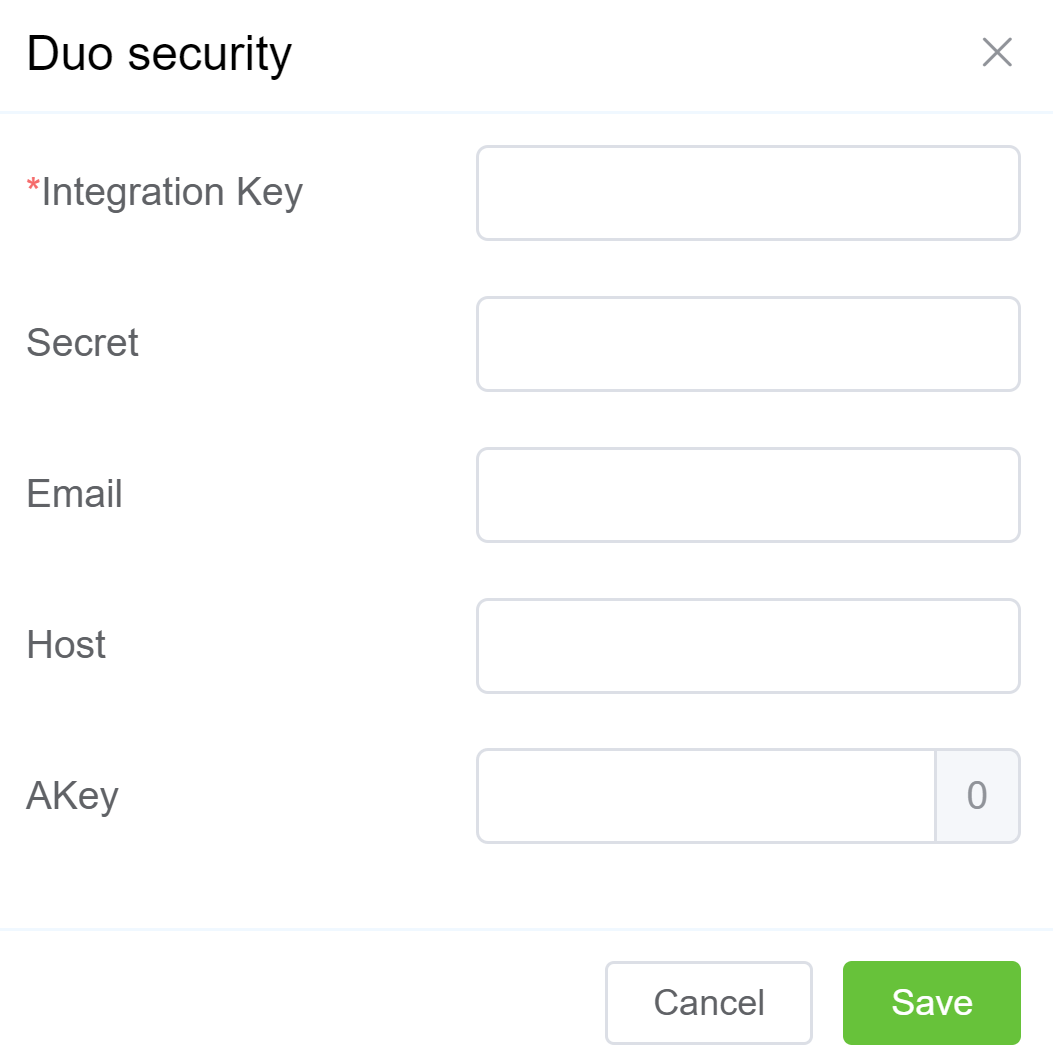 Add, and then select Duo Security. - Integration Key, Secret, and Host: Access the Duo Admin Panel, locate the