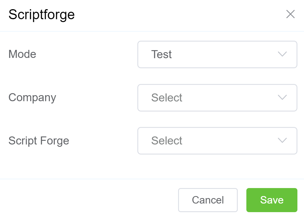 - Script Forge: Select the predefined script (details found under Developer Scriptforge.