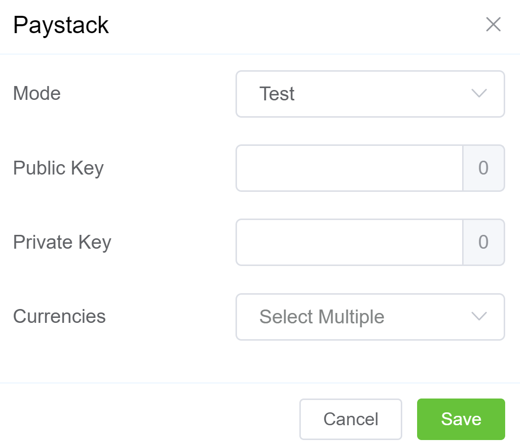 - Public Key (Publishable) and Private Key (Secret): Access the Paystack Support Link to access the Test keys and Live keys.