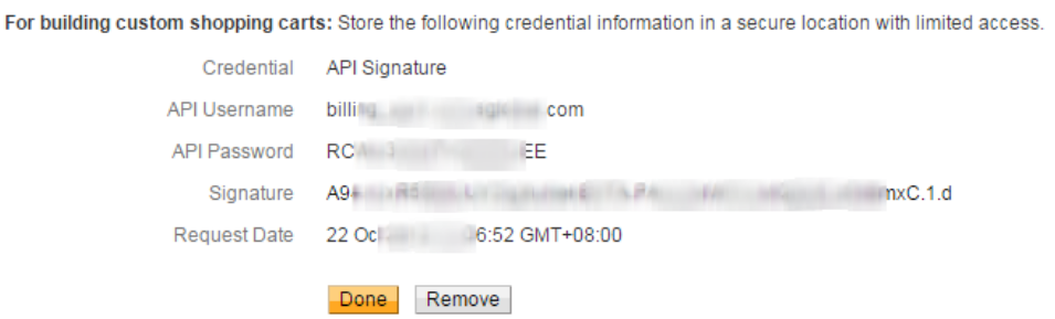 Agree and Submit. - Copy the API Username, API Password, and Signature credentials from this page into the open PayPal form in ConnexCS.