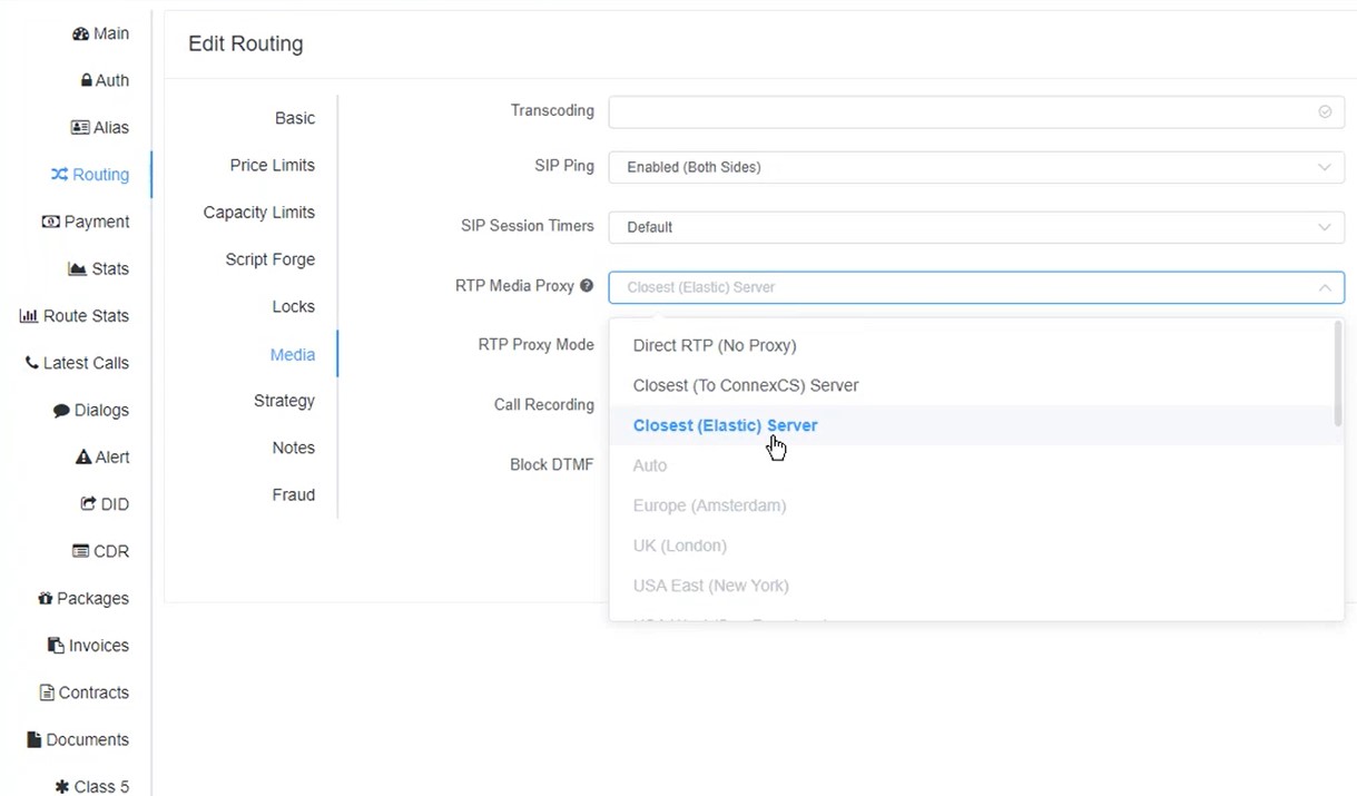 The recommended RTP Media Proxy" is Closest (Elastic) Server.