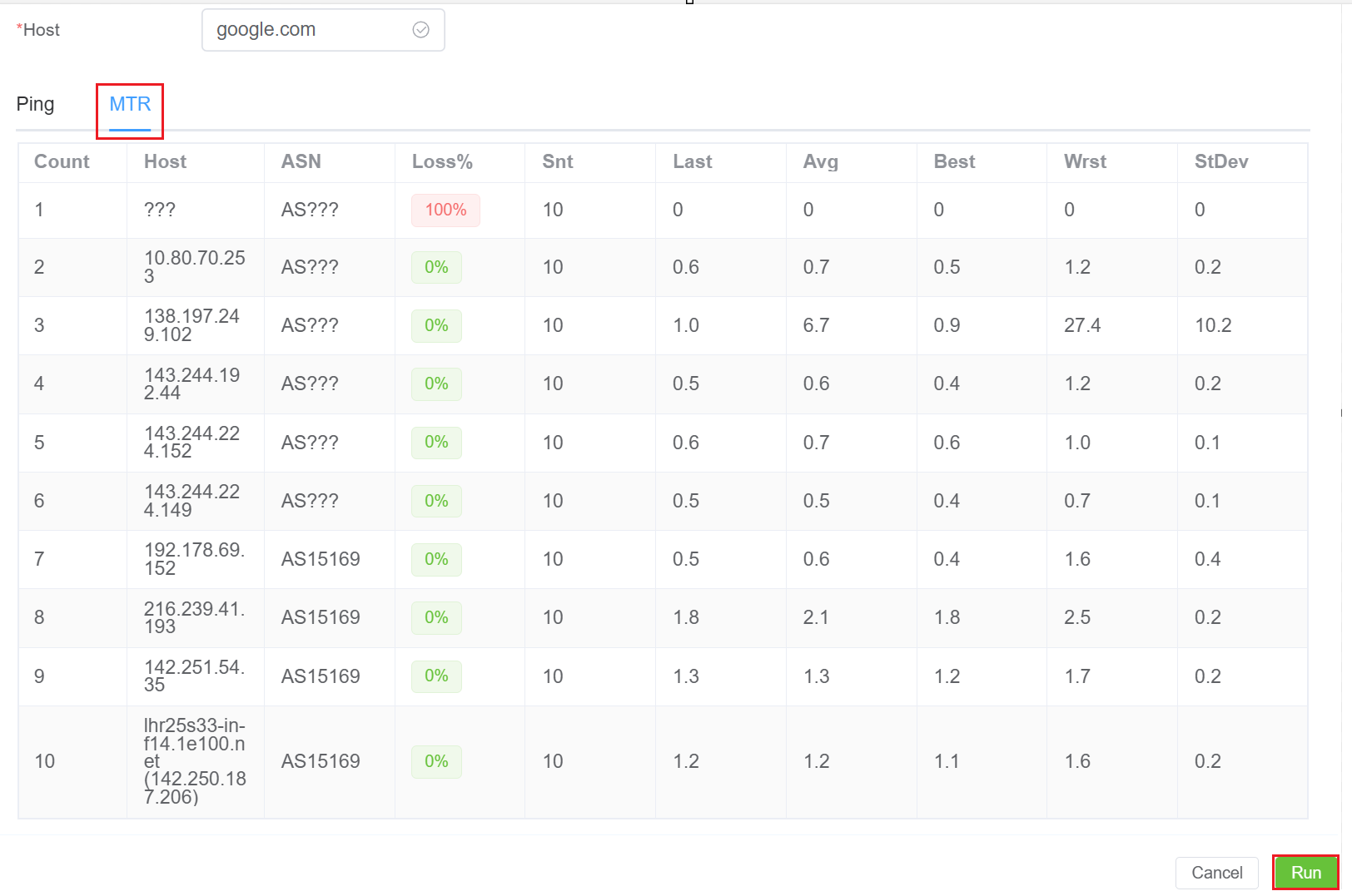 - IP: The unique server IP address. To view SIP and ICMP latency, hover over the status icon next to the server IP.