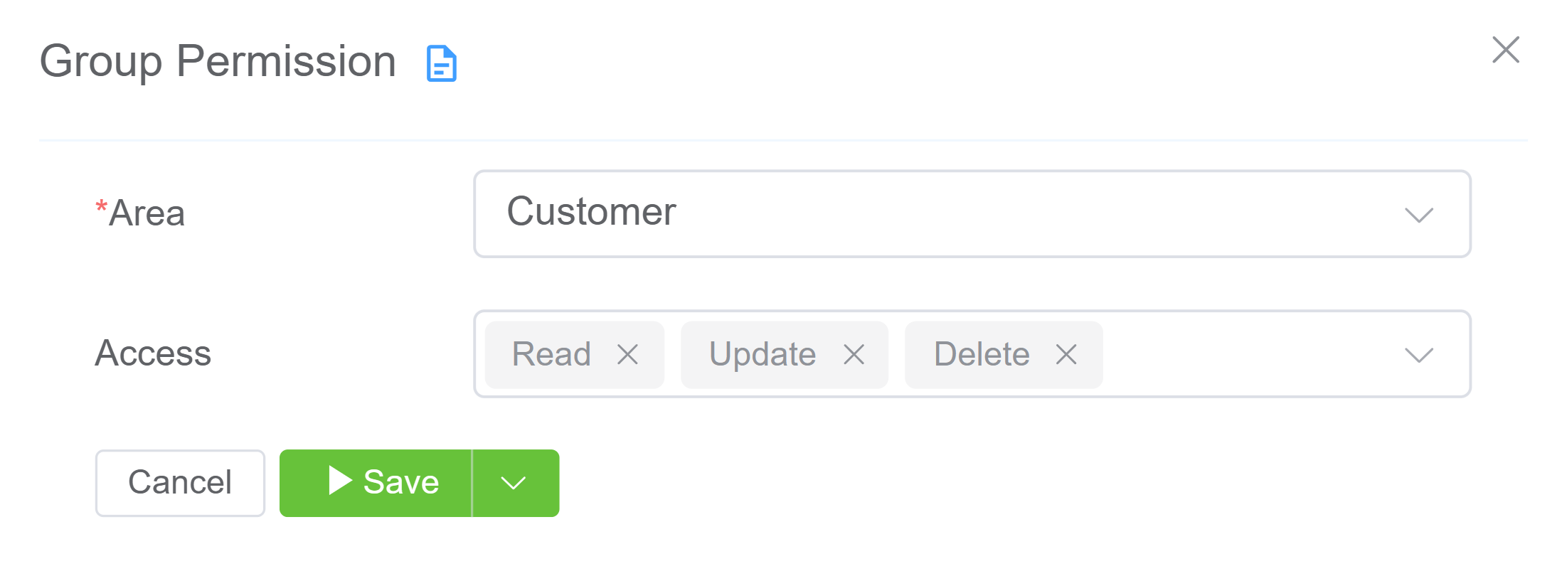 For example, if you assign only Create and Read permissions globally, the group has permissions to create and read data for all features.